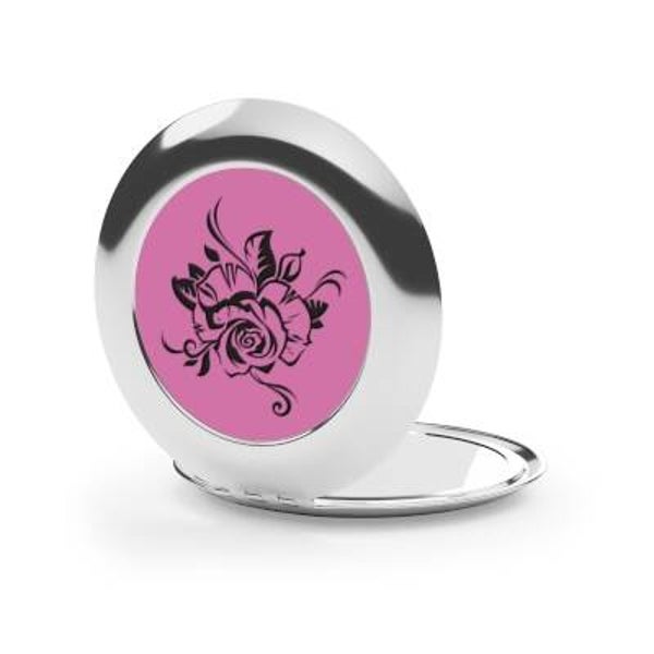 This compact mirror is the perfect makeup gadget for touching up on the go. Made to be travel-friendly, cute, and shiny, it comes with a secure-snap friction closure, a sleek round shape and a metal finish for extra stylish points.