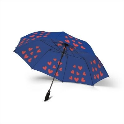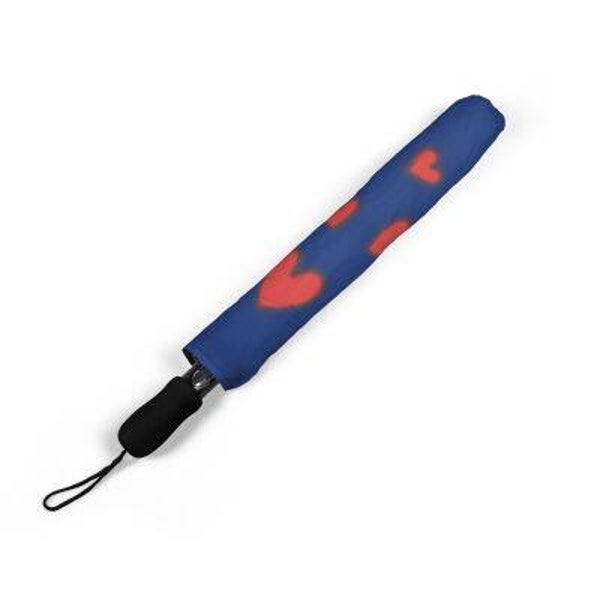 Semi-Automatic Foldable Umbrella, hearts design, blue